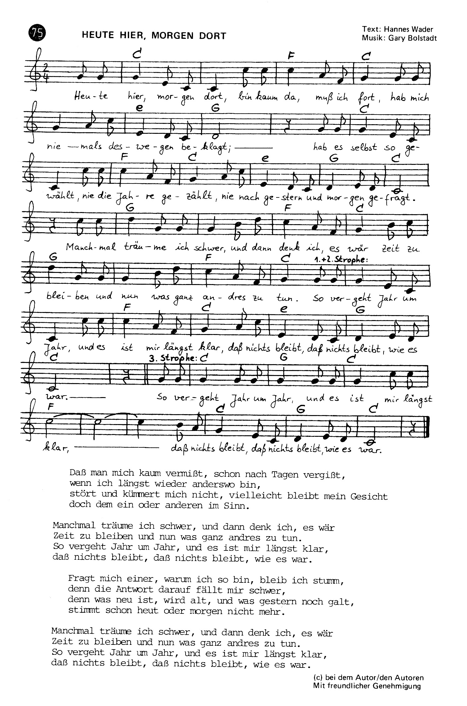 Ist bei Seite "000" angegeben, ist das Stück nicht in unserem Liederbuch, gleichwohl wollten es einige gerne hier im Verzeichnis haben.